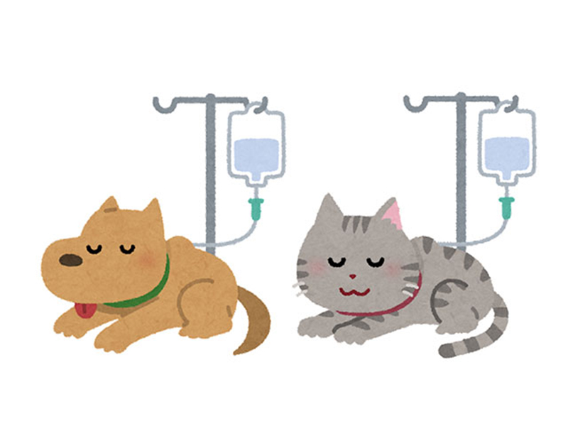 「熱中症かな?」と思ったら、すぐに動物病院に連絡しましょう。応急処置としては、布に包んだ保冷剤で首元や手足の付け根を優しく冷やすとよいでしょう。病院に到着したら、冷却処置、酸素吸入および点滴などを行いつつ、重症度の評価を行います。