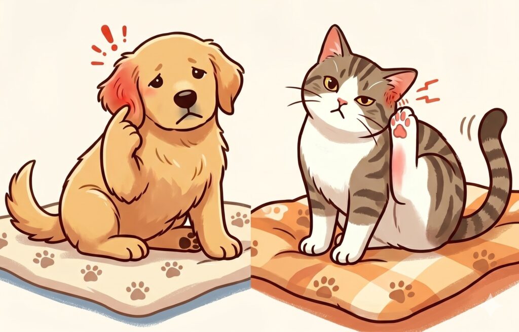 耳を振る、 後ろ足でかく、 耳だれがでるなど、 外耳炎と同じような症状を起こすことが多いです。